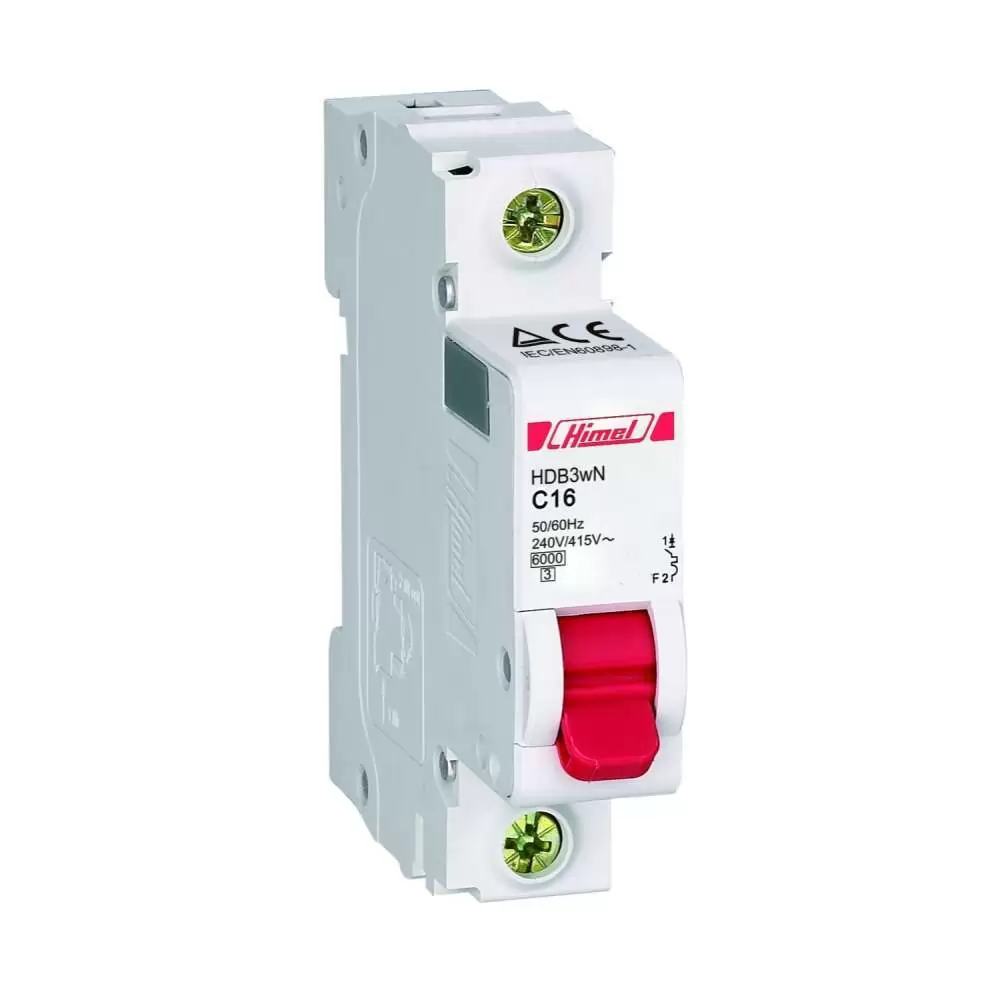 HIMEL, MCB, HDB3w, 1P, 1A, 6kA, 240V AC, 50/60 Hz, HDB3WN1C150D