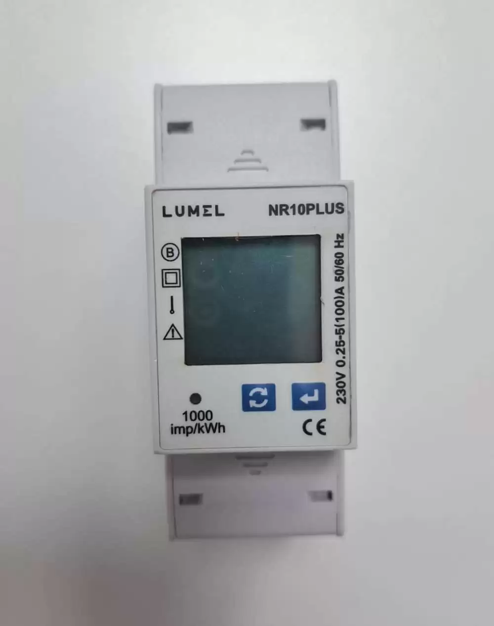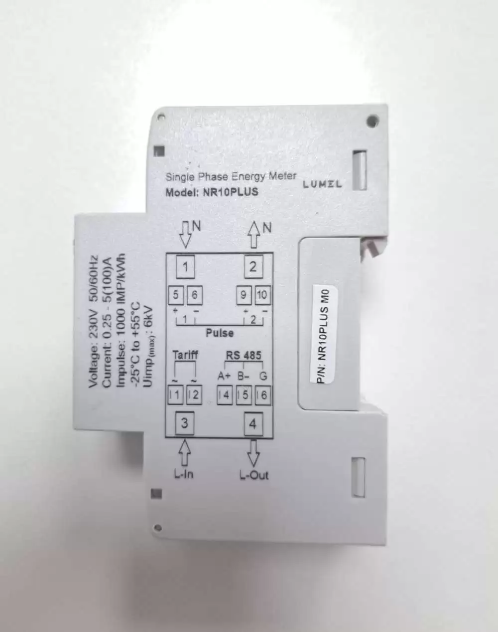 LUMEL, ENERGY METER, 1 PHASE, DIN RAIL MOUNT, DIRECT CONNECTED 100A, VOLTAGE I/P: 230V L-N, SELF POWERED, WITH RS485, 2 PULSE OUTPUTS, OLD NR10, NR10PLUS M0