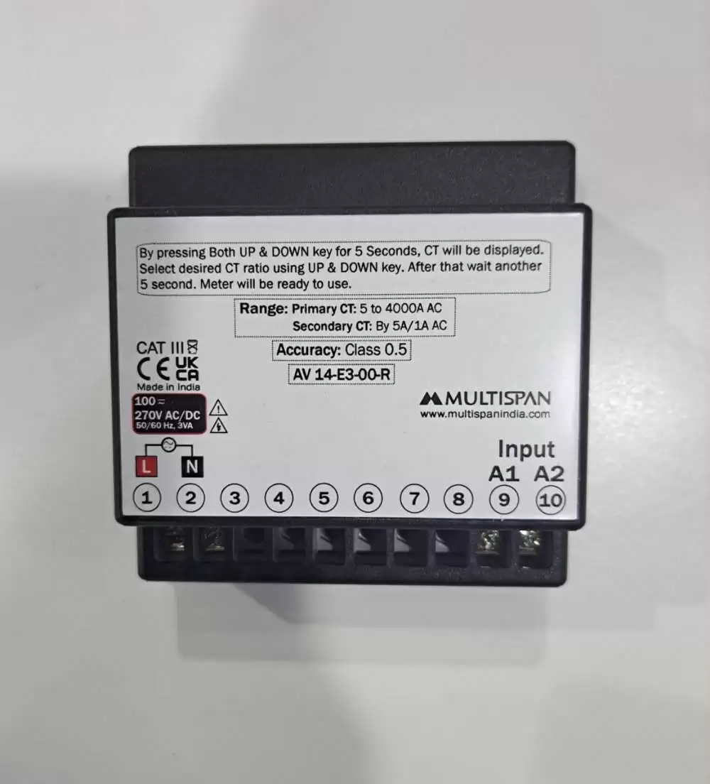 MULTISPAN, DIGITAL AMMETER AC, 1 PHASE, CLASS 0.5, 101x101mm, CURRENT I/P: 1A/5A, AUXILIARY SUPPLY: 100-270V AC/DC, AV 14-E3-00-R