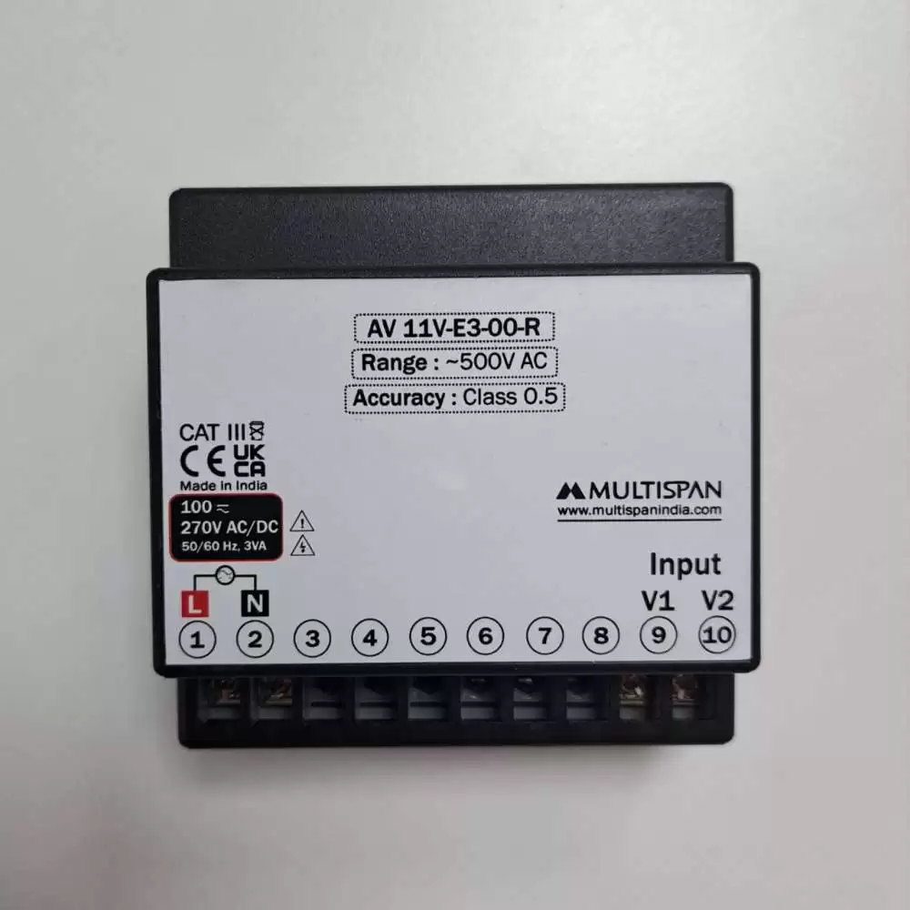 MULTISPAN, DIGITAL VOLTMETER AC, 1 PHASE, CLASS 0.5, 101x101mm, VOLTAGE I/P: 30-500V AC, AUXILIARY SUPPLY: 100-270V AC/DC, AV 11V-E3-00-R
