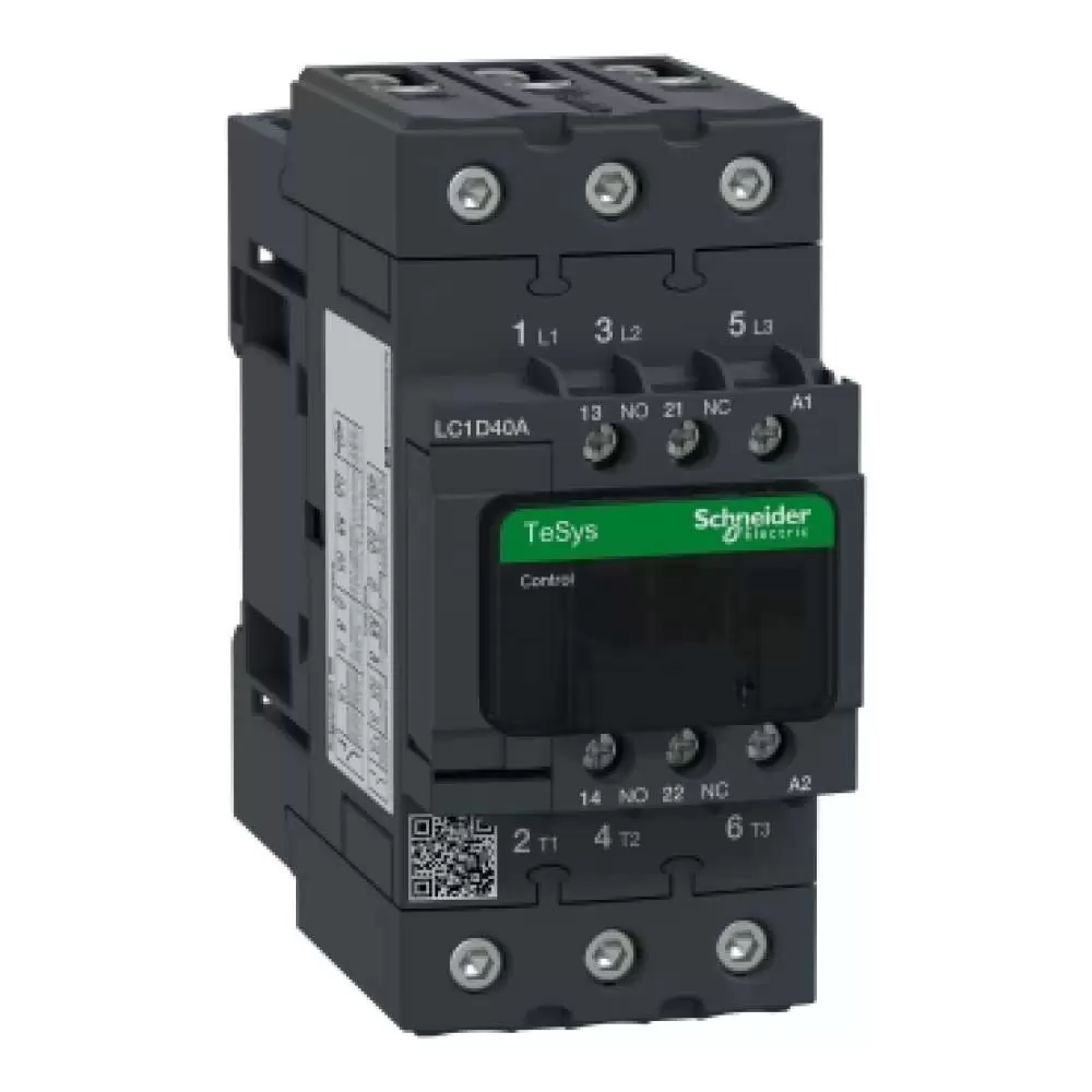SCHNEIDER ELECTRIC, CONTACTOR, TeSys Deca, 3P, POLE CONTACT 3NO, 40A, AUXILIARY CONTACT 1NO+1NC, COIL VOLTAGE 240V AC, 50/60 Hz, LC1D40AU7