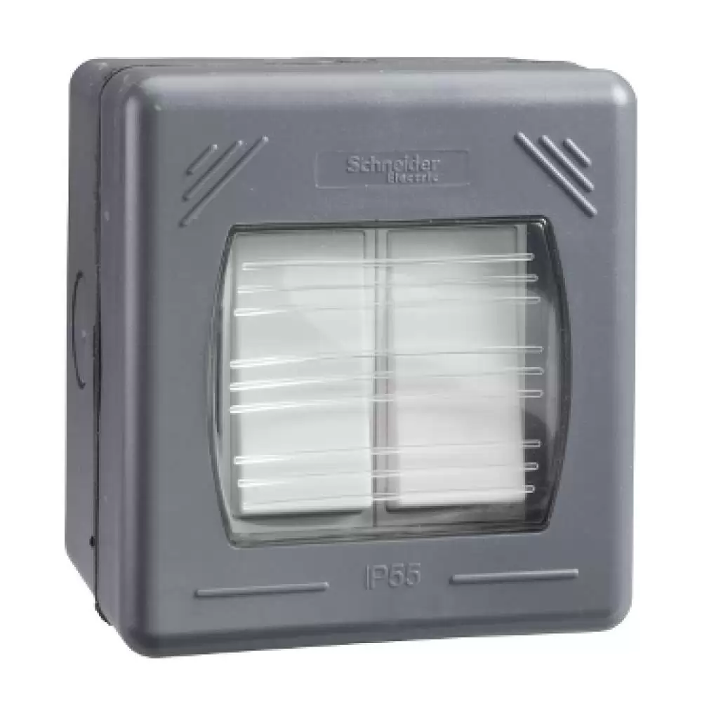 SCHNEIDER ELECTRIC, SWITCH, 2 GANG, 2 WAY, 10AX, 230V AC, IP 55, GWP1622