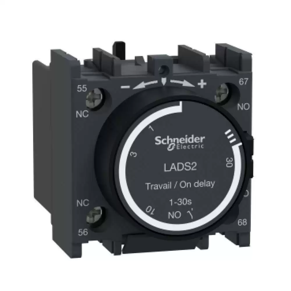SCHNEIDER ELECTRIC, TIME DELAY AUXILIARY CONTACT BLOCK, TeSys Deca, CONTACT 1NO+1NC, ON DELAY, 1-30s, 690V AC, IP 20, LADS2