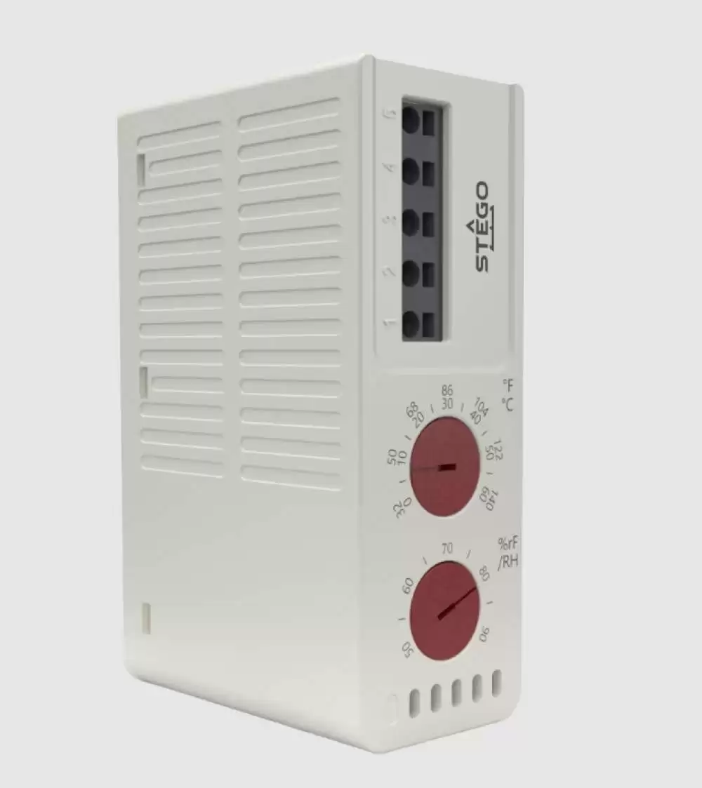 STEGO, ELECTRONIC HYGROTHERM, ETF 012, DIN RAIL MOUNT, OPERATING VOLTAGE: 24-240V AC/DC, SETTING RANGE 1: 0-60 DegC, SETTING RANGE 2: 50-90 PERCENT RH, IP20, 01260.0-01