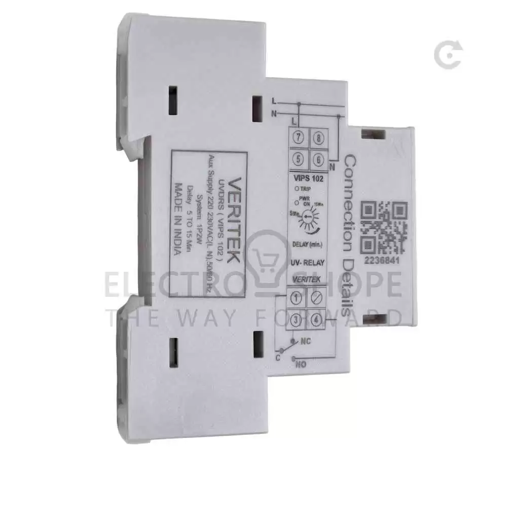VERITEK, UNDER VOLTAGE RELAY, 1PHASE 2 WIRE, DIN-RAIL, 5 TO 15 MIN., AUX: 220-230V AC, 50/60 Hz, VIPS-102-1P
